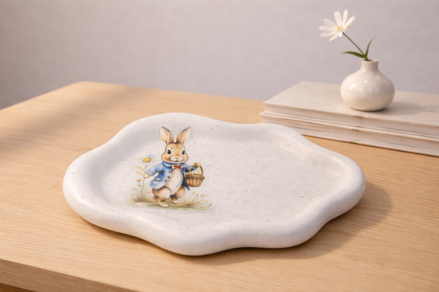 🐰 Face parte din Colectia Peter Iepurașul — o ediție specială în serie limitată de doar 36 de bucăți unicat, cu modele diferite în tematica lui Peter Iepurașul. Nu există două tăvițe la fel: fiecare are un aranjament unic al elementelor, mici variații de detalii și o compoziție proprie, astfel încât primești o piesă cu adevărat irepetabilă.