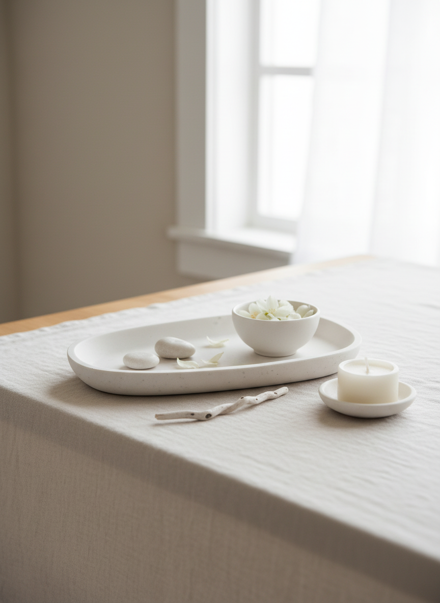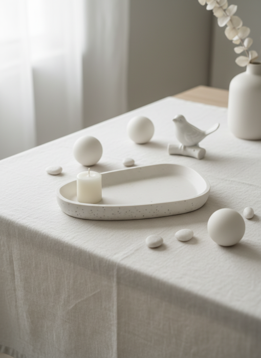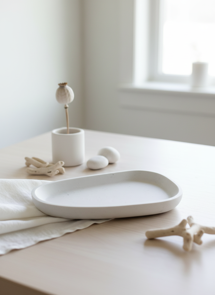 Fiecare tăviță este turnată manual în atelierul Alinturi, din Jesmonite, un material compozit mineral-acrilic pe bază de apă, cunoscut pentru durabilitatea și aspectul său elegant. Fiecare piesă este turnată în matrițe premium și finisată manual, ceea ce face ca nuanțele, textura și micile detalii să fie ușor diferite, conferind unicitate fiecărui produs.